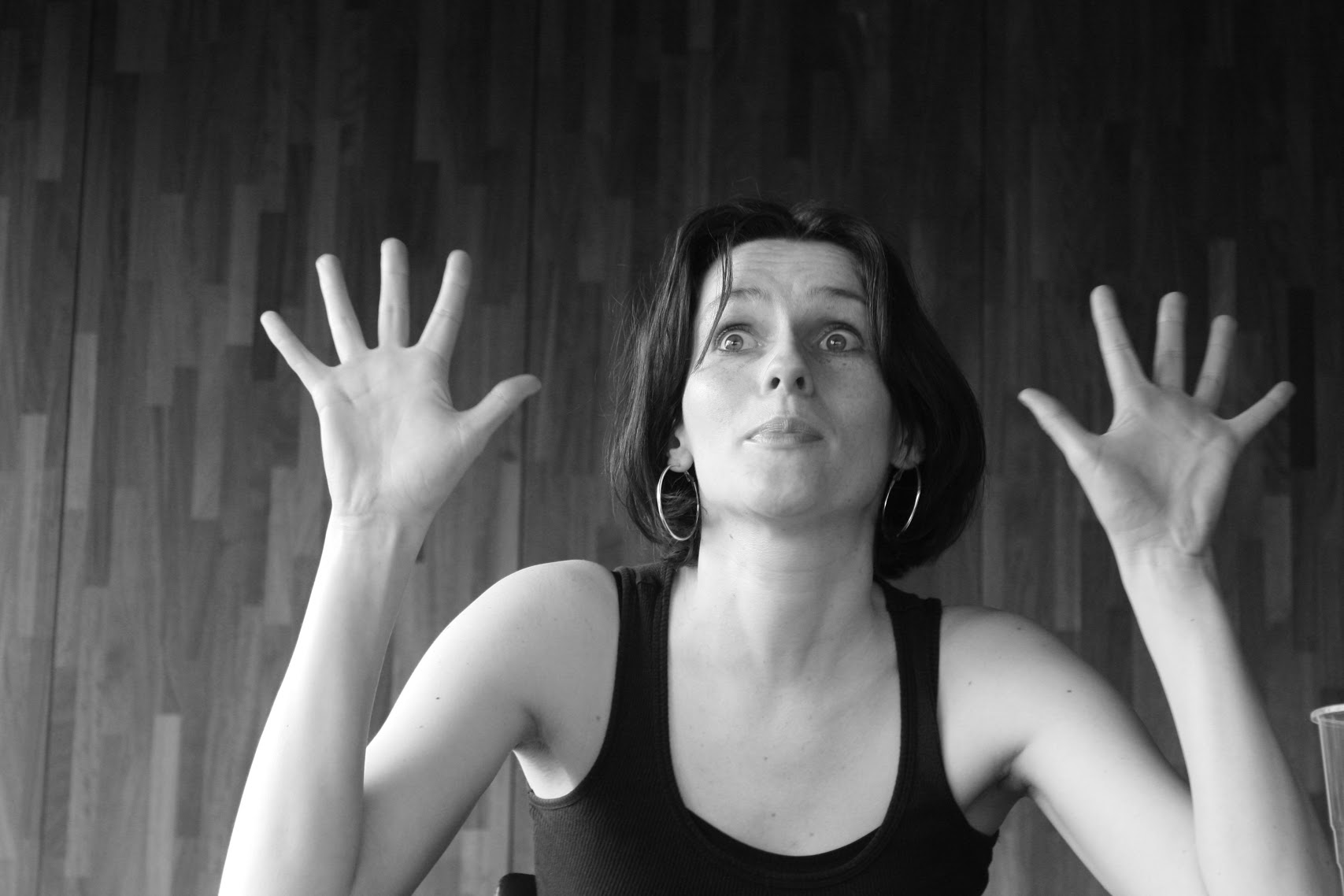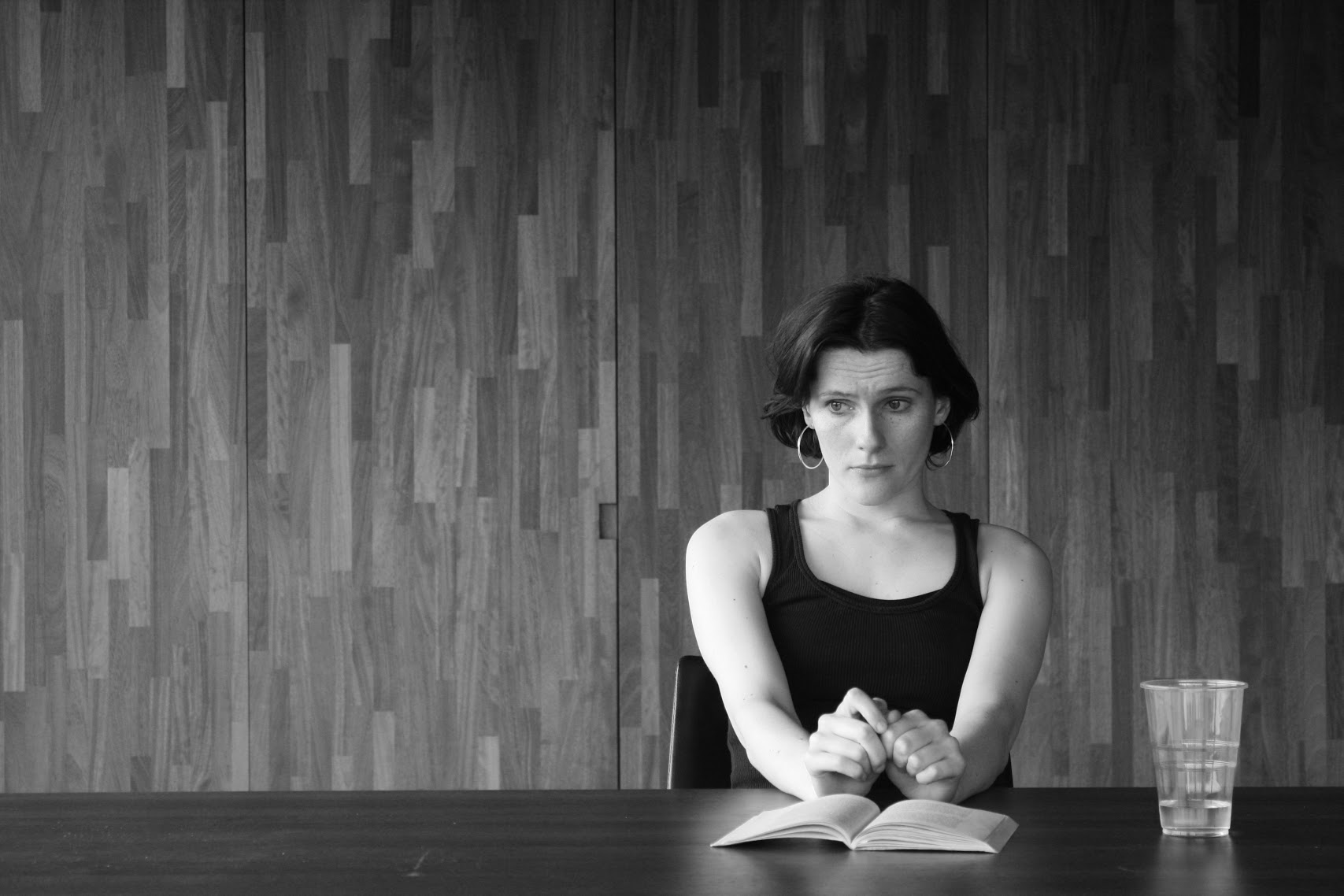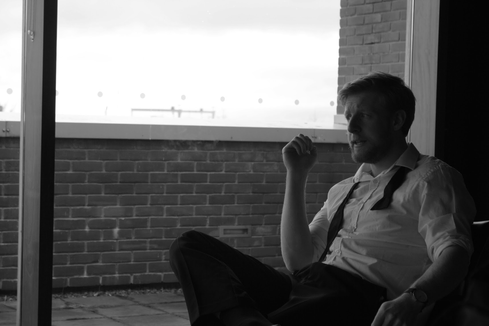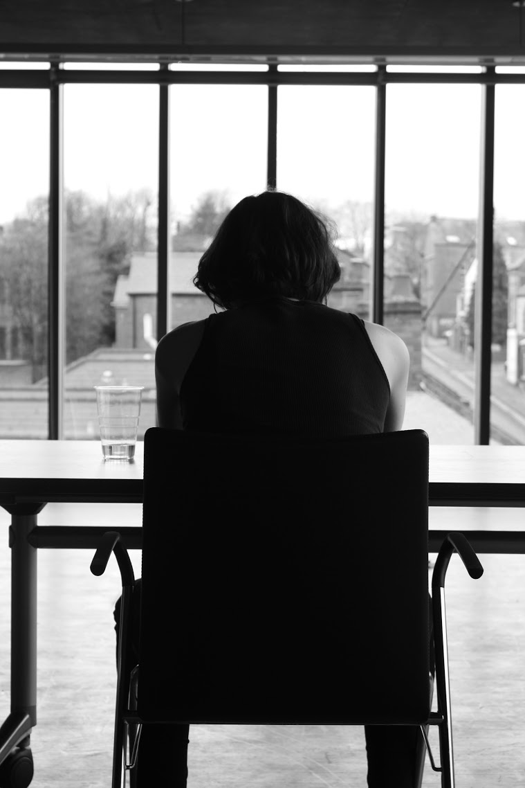 Myself and around 30 others huddle in the small kitchenette area before being ushered into a small dark room filled with stools (as an aside, the only downside about the whole experience was how uncomfortable the stools were stools to sit on for 2 hours), at the front we are greeted meekly by a man (already in character) who nervously paces back and forth until the lights dim and the show begins. Just before the darkness envelops us I spot a woman dressed entirely in black nestled in a windowsill by the stage, but before long I forget all about her…