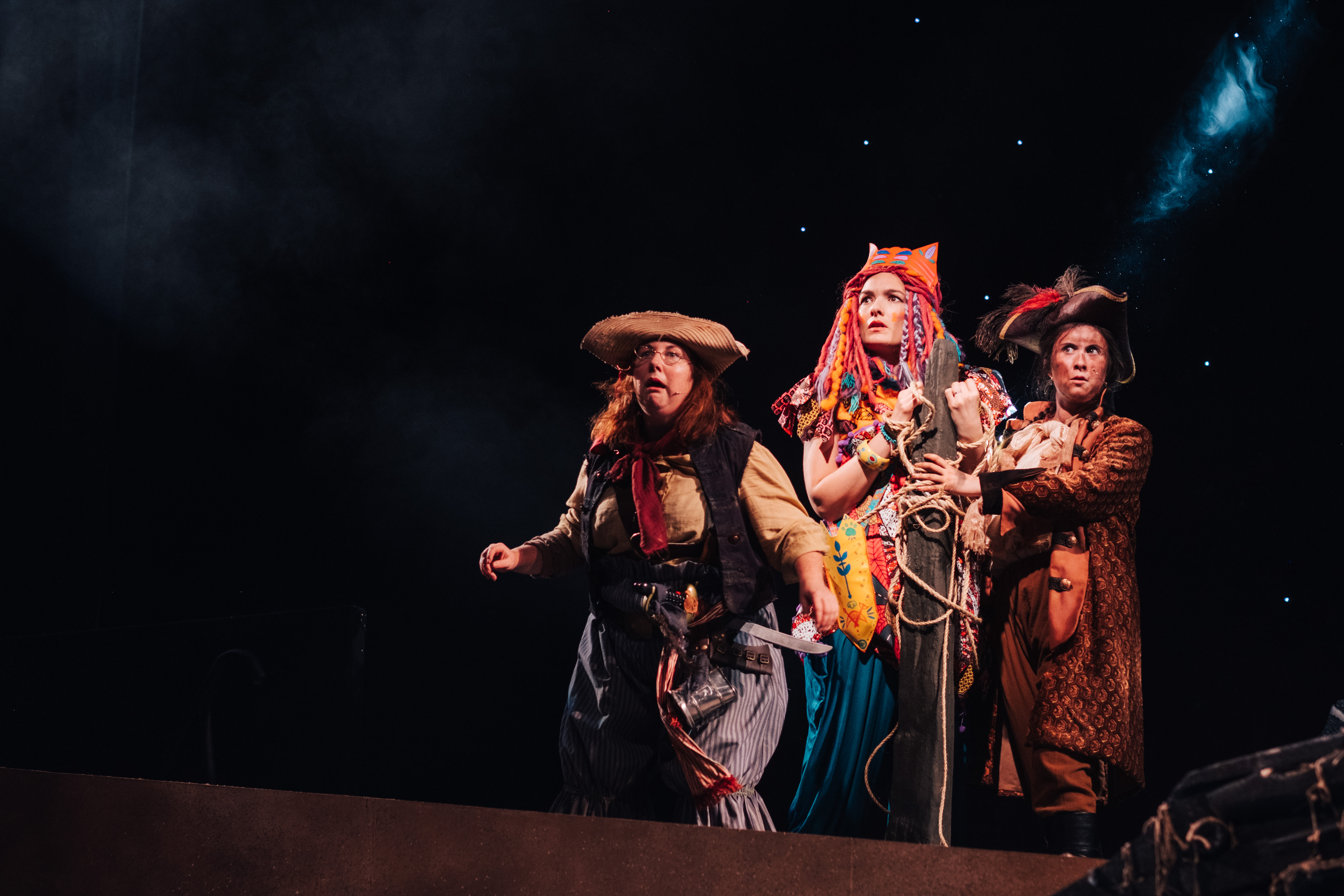 There’s singing male mermaids, a superbly terrifying female Captain Hook played by Allison Harding and even a reappearance from the crocodile used in recent production Crocodile Fever to add to the fantastical nature of the show. Michael Mahoney dazzles as a scruffy Peter Pan, while Rhiannon Chesterman plays a much more put together Wendy Darling.