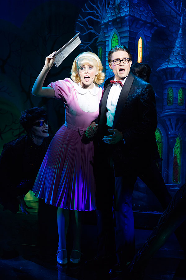 The audience were dressed up and well into the spirit of things as the opening number Science Fiction/Double Feature got under-way, and by the time we meet our narrator for the evening (played by Norman Pace) the shout-outs are coming thick and fast. That’s the thing about the Rocky Horror Show – the audience almost have a script of their own and are encouraged to shout-out and heckle the performers to make it a truly interactive experience indeed. As it was my first time seeing the show, all I could do was sit back and watch, but the more seasoned individuals in the audience didn’t miss a beat.
