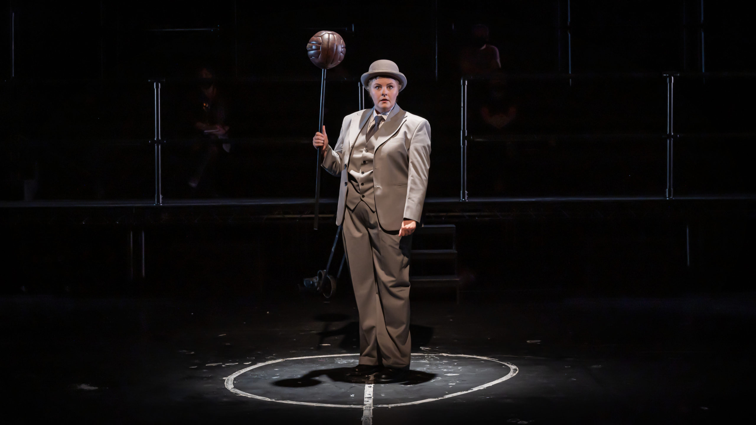 With a stripped back stage set, some novel on-stage pitch side seating for a few theatre goers and extremely effective flood light style lighting from Ciaran Bagnall, this is as close to a live football match as I am ever likely to get, and who would have thought it would be so captivating?